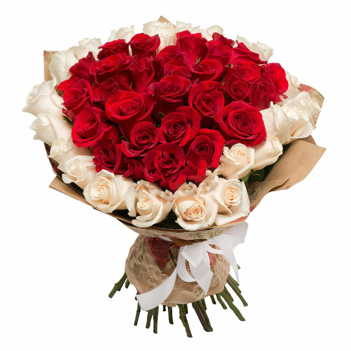 Роза одноголовая белая, роза одноголовая красная. Упаковка (лента, пленка, крафт, сетка, пленка матовая)