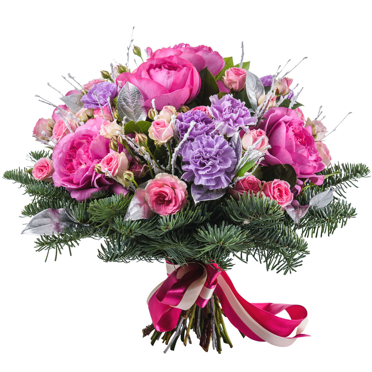 | Состав | Гвоздики, Кустовые розы, Пихта, Розы |
