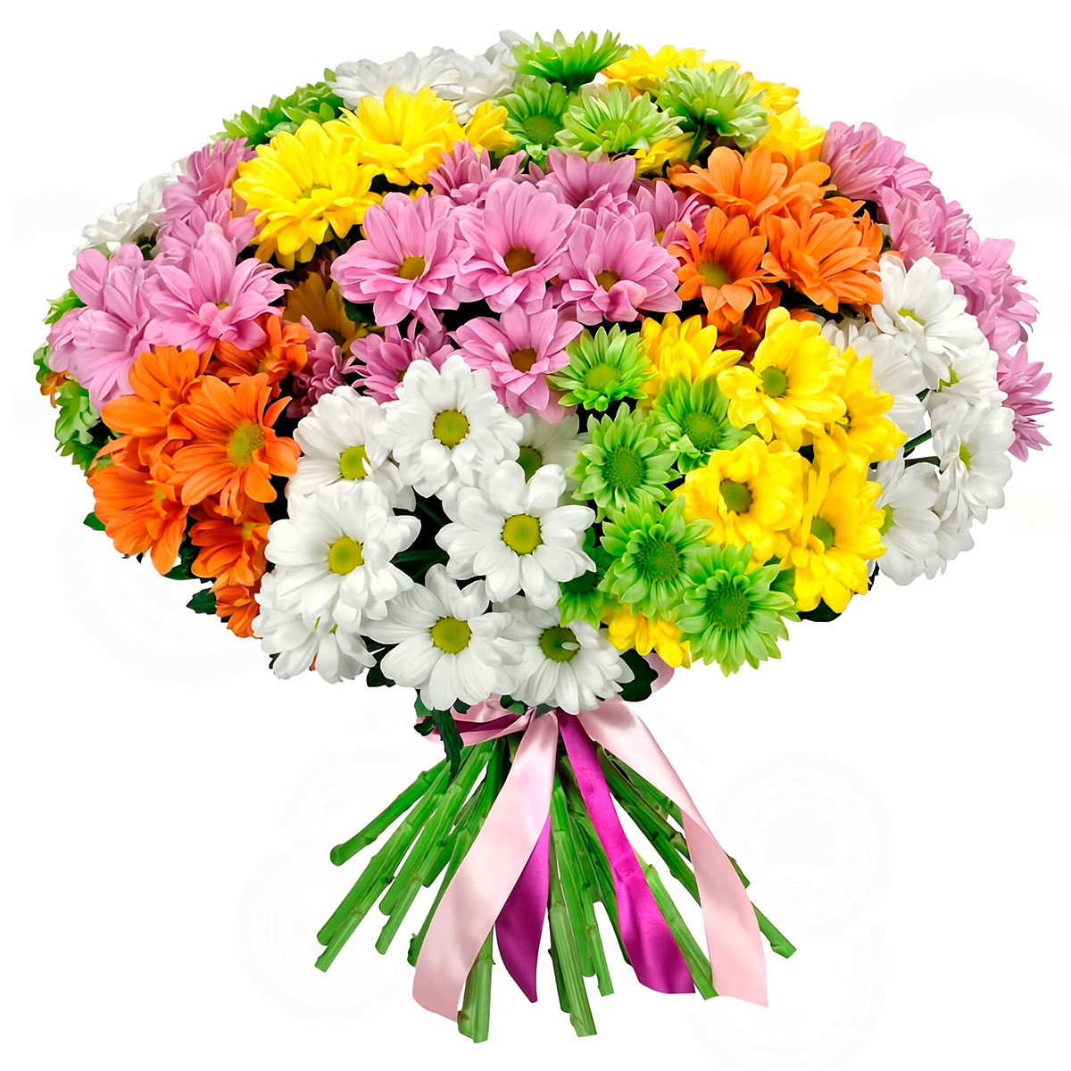 Хризантемы кустовые оранжевые, розовые, зеленые, белые, желтые.