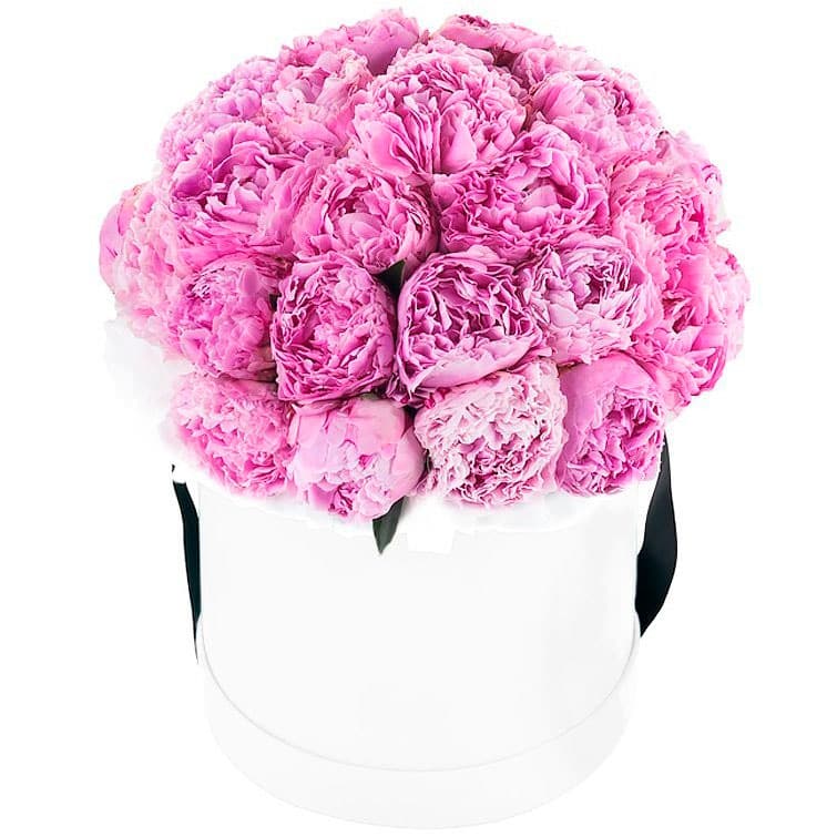 Пион розовый. Упаковка (шляпная коробка, квадратный бокс, коробка сердце, оазис)