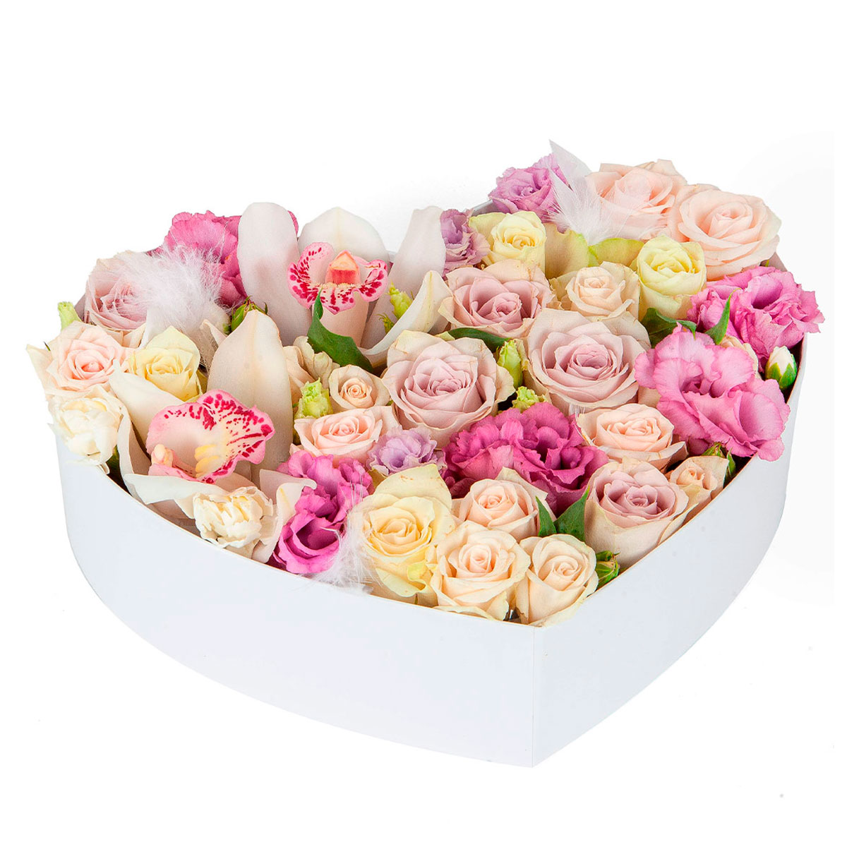 Цветы в коробке «Нежный флер» с доставкой по г Благовещенск: вы можете заказать букет в цветочном интернет-магазине «Флормания» по цене от 3099 руб.
