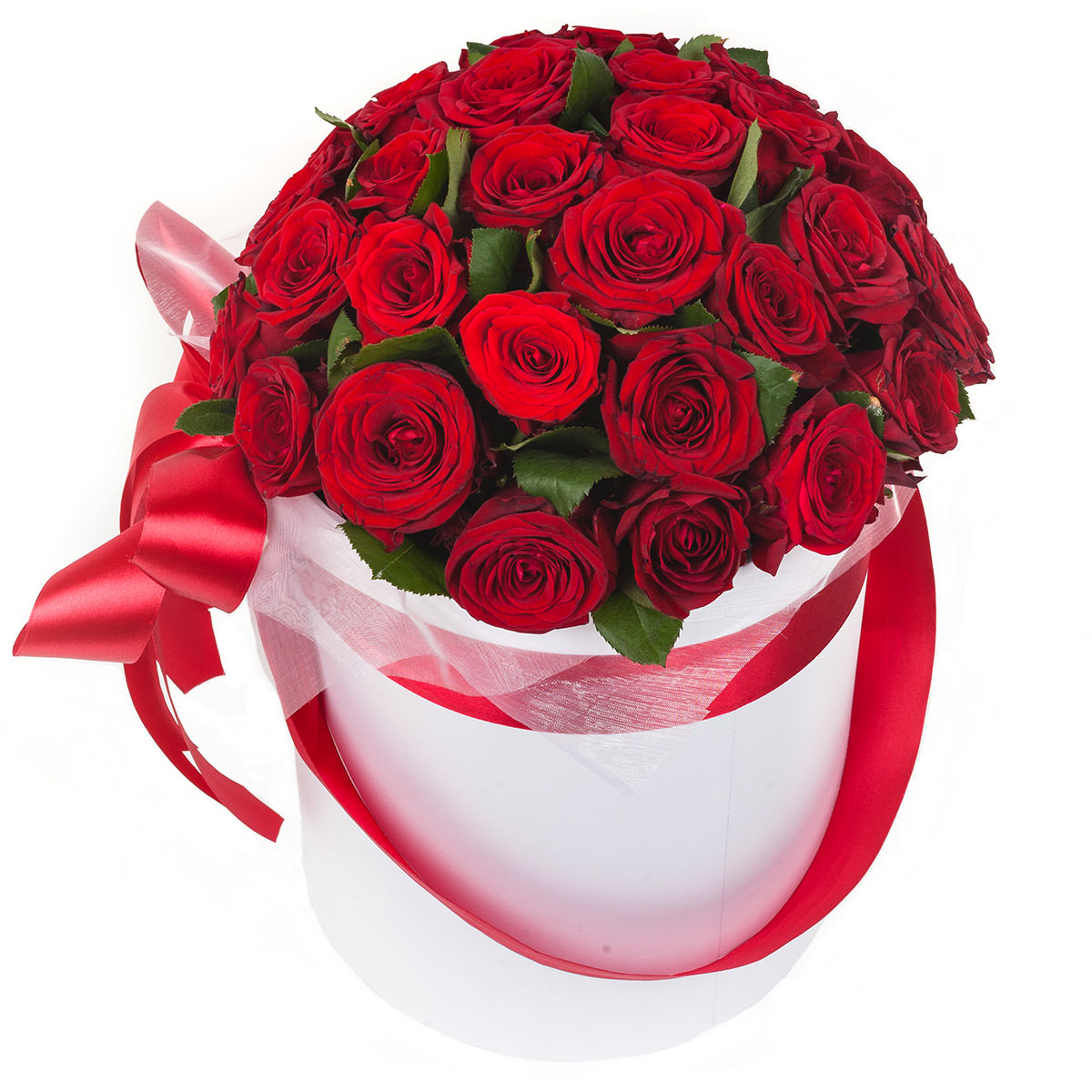Роза одноголовая красная. Упаковка (шляпная коробка, квадратный бокс, коробка сердце, оазис)