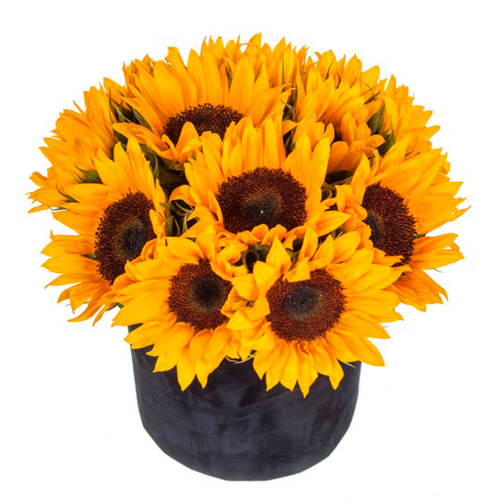 Подсолнух. Упаковка (шляпная коробка, квадратный бокс, коробка сердце, оазис)